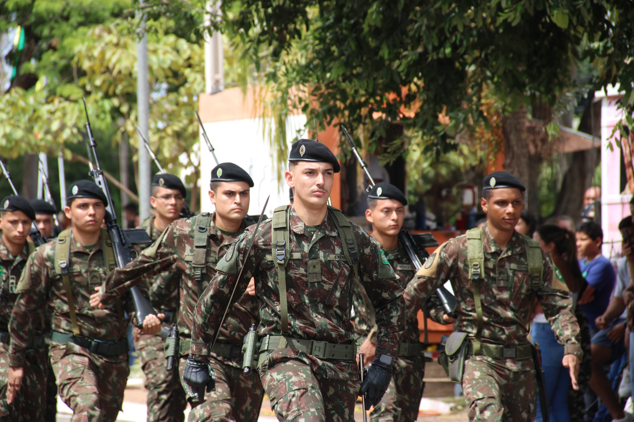 Instituições de Segurança e Ordem: Participação da Polícia Militar, Detran e a imponente fanfarra do Exército Brasileiro.